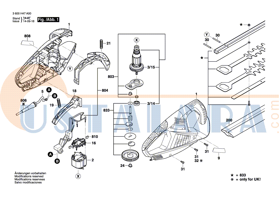 Bosch AHS 45-16 Yedek Parça: 3 600 H47 A00 Çit Kesme Budama Orjinal Fiyat Listesi